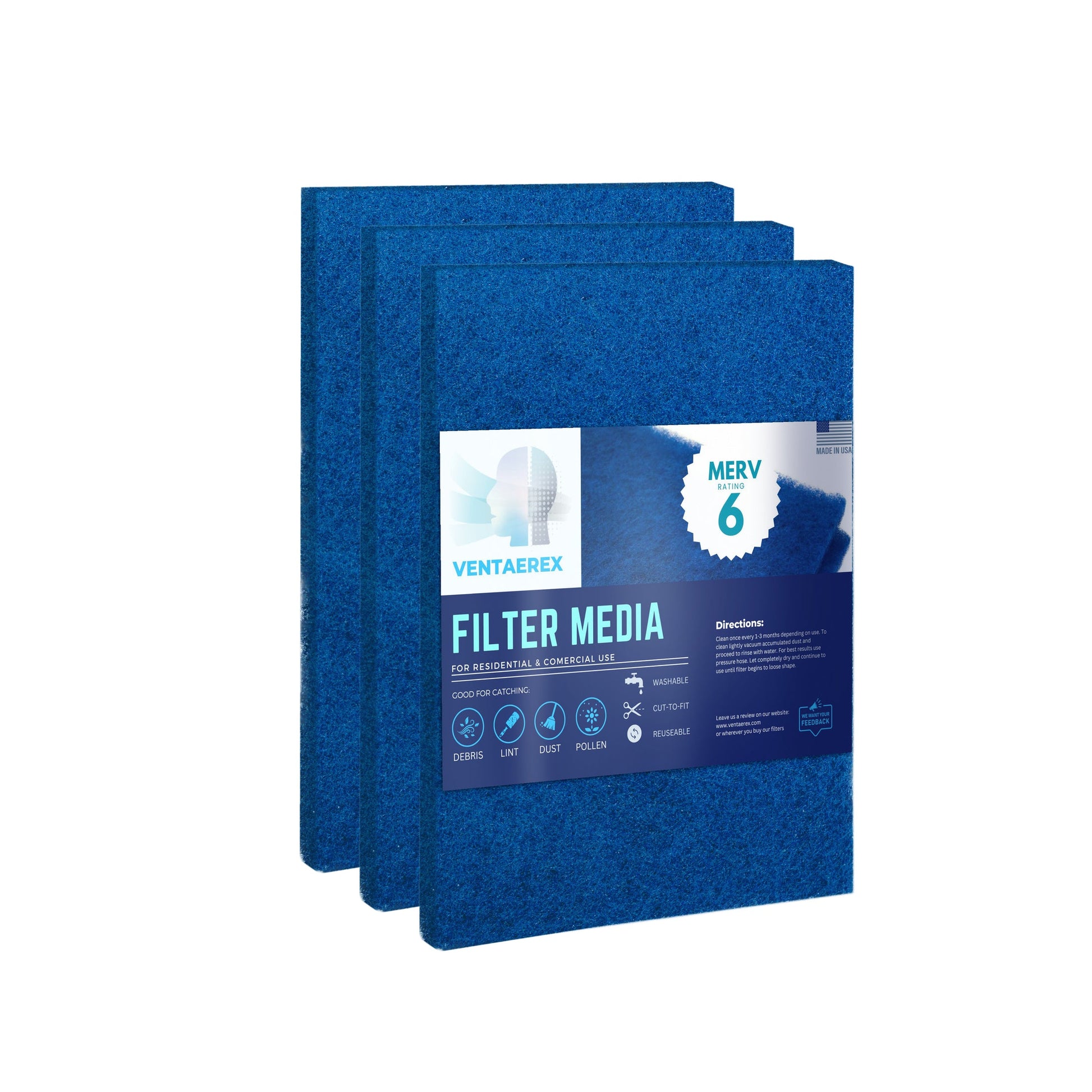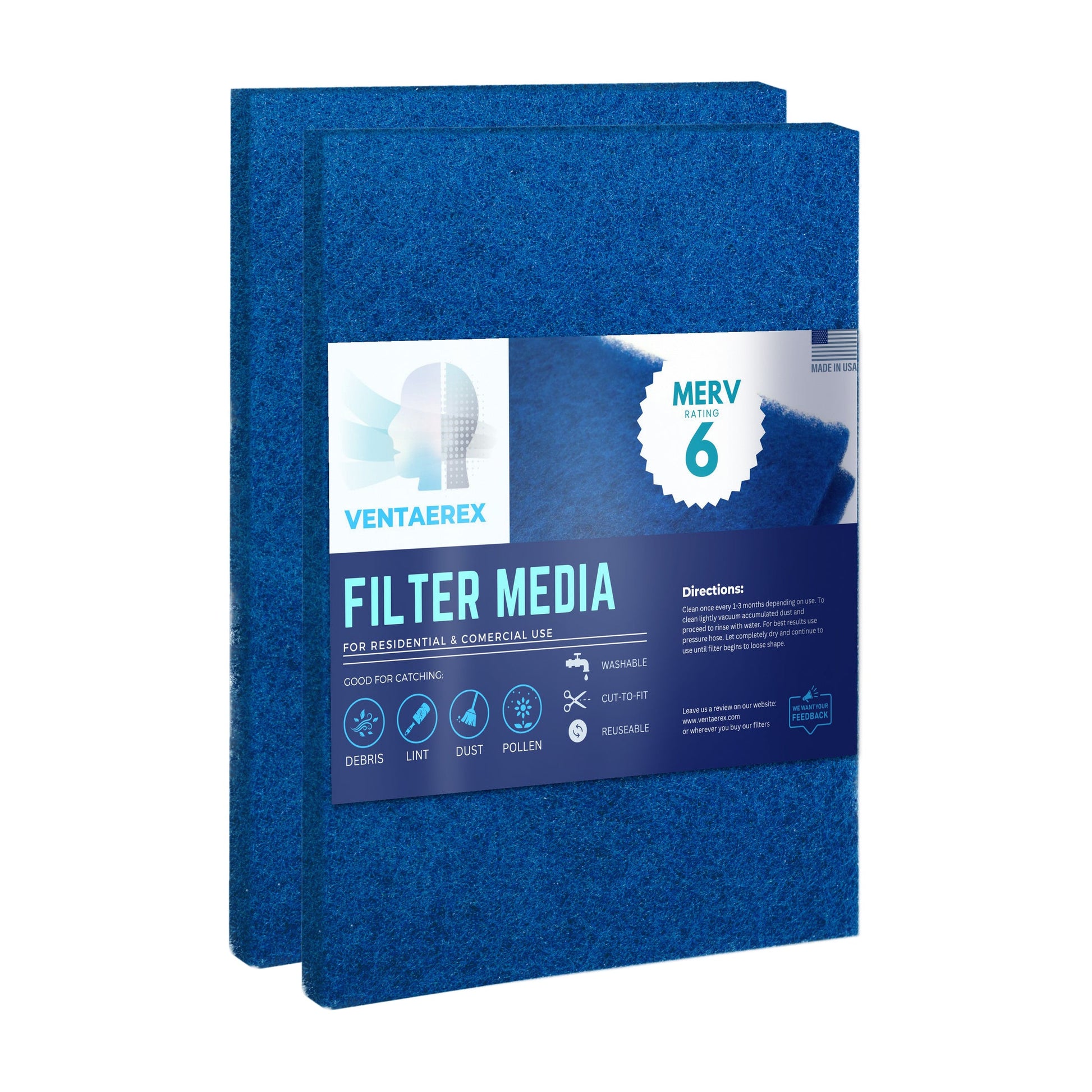 Self-supporting filtration media, perfect for those looking for a longer lasting alternative to disposable filters. Ventaerex filters are pre-cut to accommodate various sizes but can be further cut to fit non-conventional units or return vents to ensure a perfect fit.
